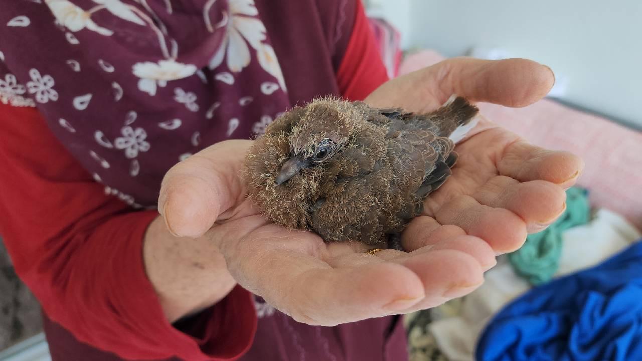 Amasya’da 78 yaşındaki kadın, annesinin terk ettiği güvercin yavrusuna baktı