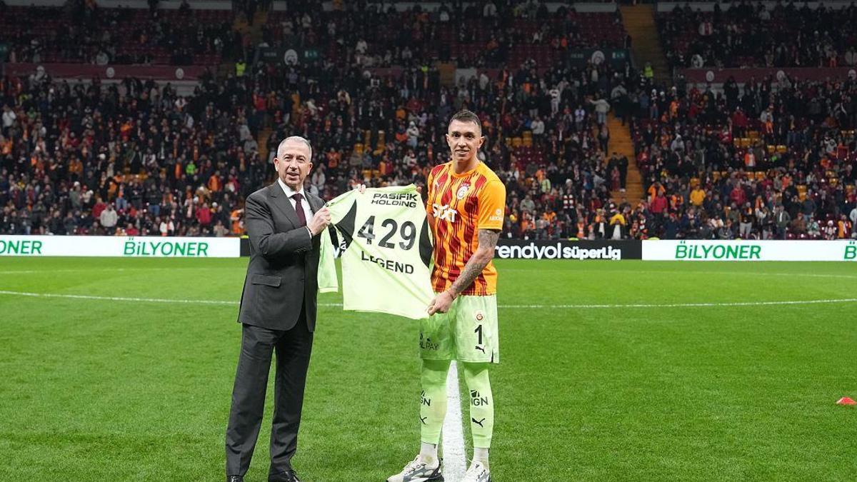 Galatasaray oyuncusu rekorunu Süper Lig tarihinde daha fazla yer alan ve oyundan önce bir plaket alan Muslera, “Bu anlarda kelimeler gerçekten yeterli değil. 2011 yılında bu büyük kulübe geldim. Bireysel olarak ve takım olarak birçok şey kazandık. Benim adımın en üstte olması büyük bir zevk. Öğretmenlerim, arkadaşlarım ve hayranlarıma çok teşekkürler. Her andan zevk alıyorum. “429 oyun da bize yavaş yavaş sona erdiğimizi söylüyor,” dedi ve bu ifadelerle dikkat çekti çünkü sözleşmesi sezon sonunda sona erecek.
